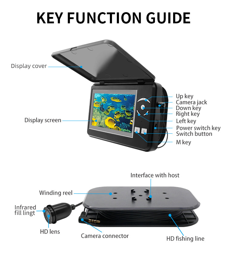 - This camera helps you to monitor the fish and to observe the underwater topographic, you can see clearly if the fish bite the hooks or not.
